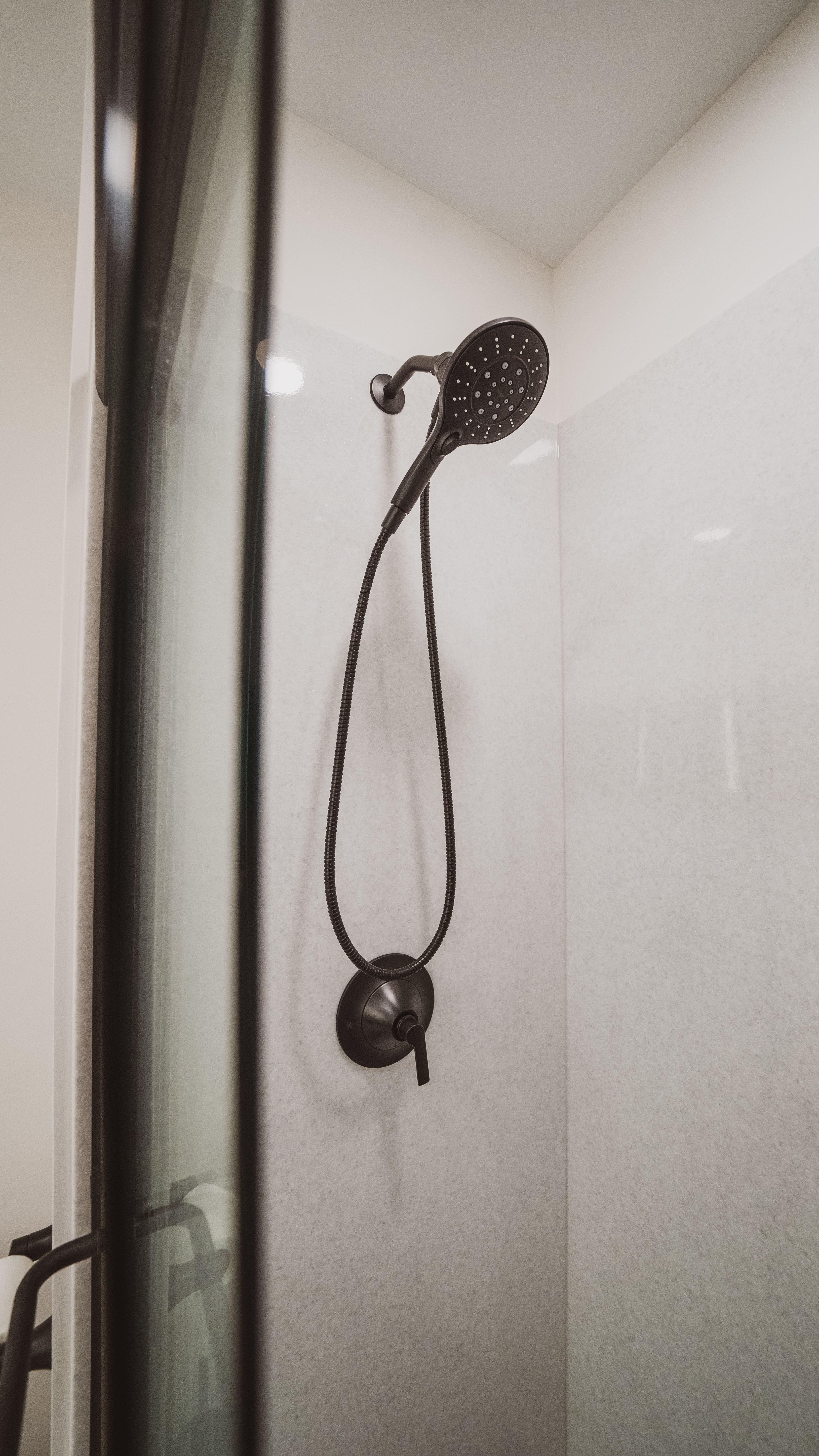 • Shower Fixtures: High-quality fixtures in finishes such as chrome, brushed nickel, or matte black complement the onyx panels. Options include rainfall showerheads, handheld sprayers, and body jets for a spa-like experience.